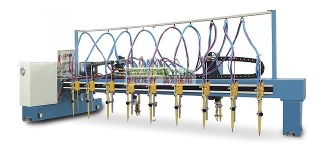 GS/Z-4000火焰多頭直條切割機(jī)(H型鋼數(shù)控切割機(jī))HGZ-4000數(shù)控/多頭直條火焰切割機(jī)HGZ-4000型龍門式直條數(shù)控切割機(jī)屬于一款多功能型數(shù)控切割機(jī)。 當(dāng)需要把一塊鋼板切割成若干個等寬直條的時候,可以在數(shù)控切割機(jī)上配以直條割炬,能一次性把鋼板切割成多個直條,有效的提高切割效率,并且能使切割時直條兩側(cè)受熱均勻,避免產(chǎn)生較大的熱變形。